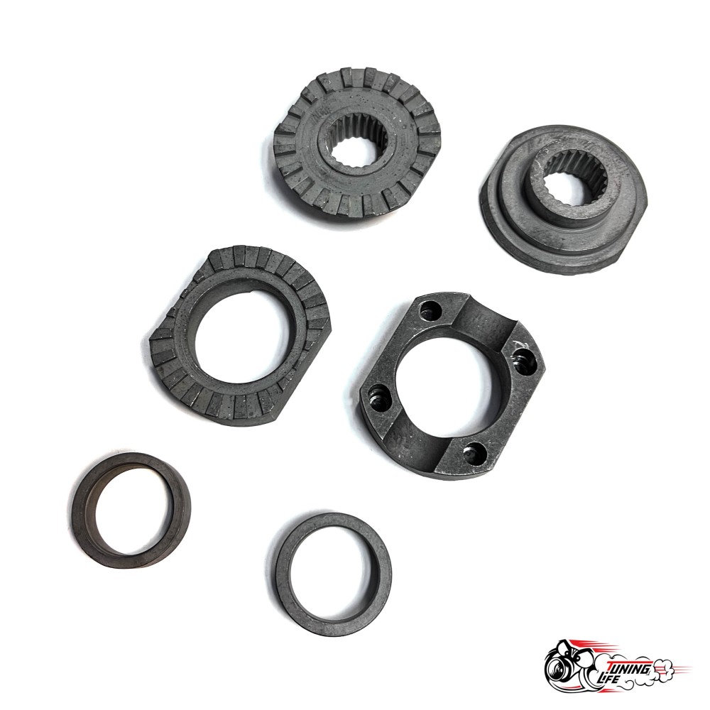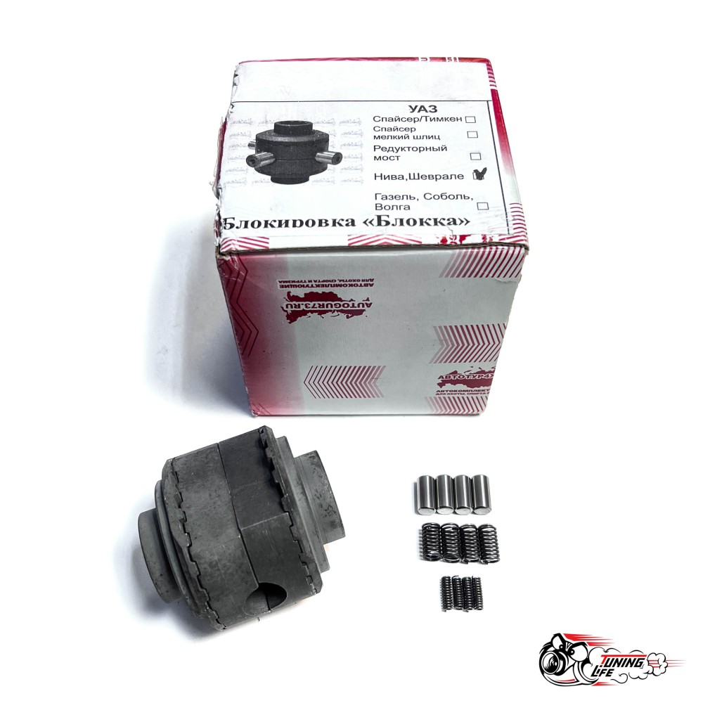 Блокка - автоматическая 100% блокировка. Конструкция блокировки достаточно проста и, как следствие, предельно надежна. Блокировка состоит из пары полуосевых и пары распорных муфт, пружинок, штифтов и шайб.
