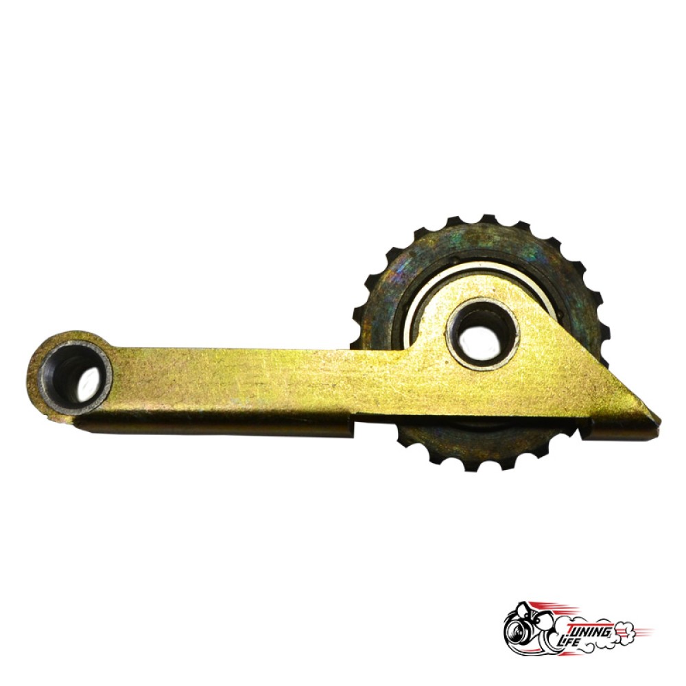Корпус натяжителя изготовлен из стали, шестерня установлена на шарикоподшипнике. Снижает шум механизма ГРМ, повышается надежность системы.