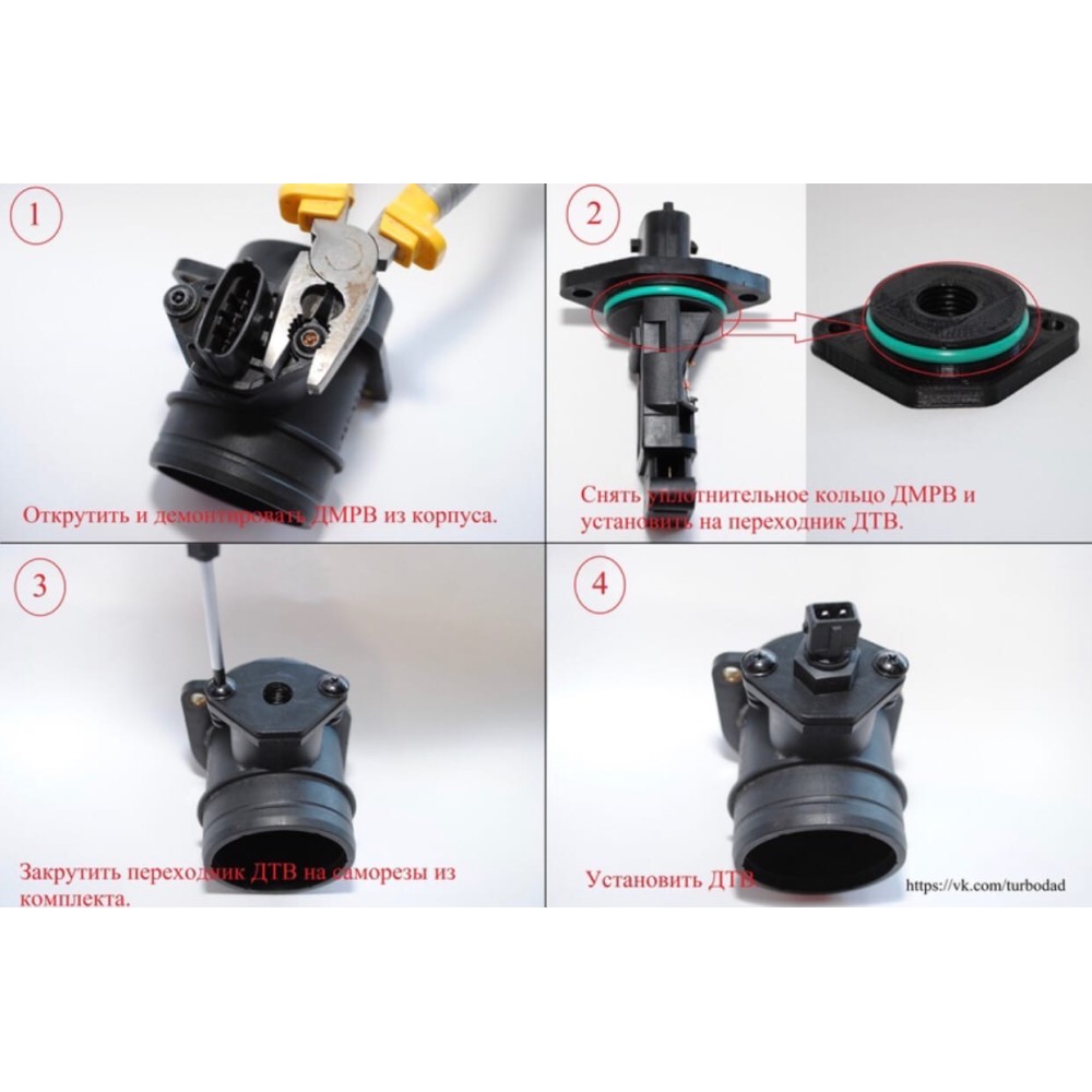 Переходник монтируется в корпус ДМРВ. Применяется на атмосферном двигателе для установки ДТВ при переходе на ДАД . Резьба М14*1.5.