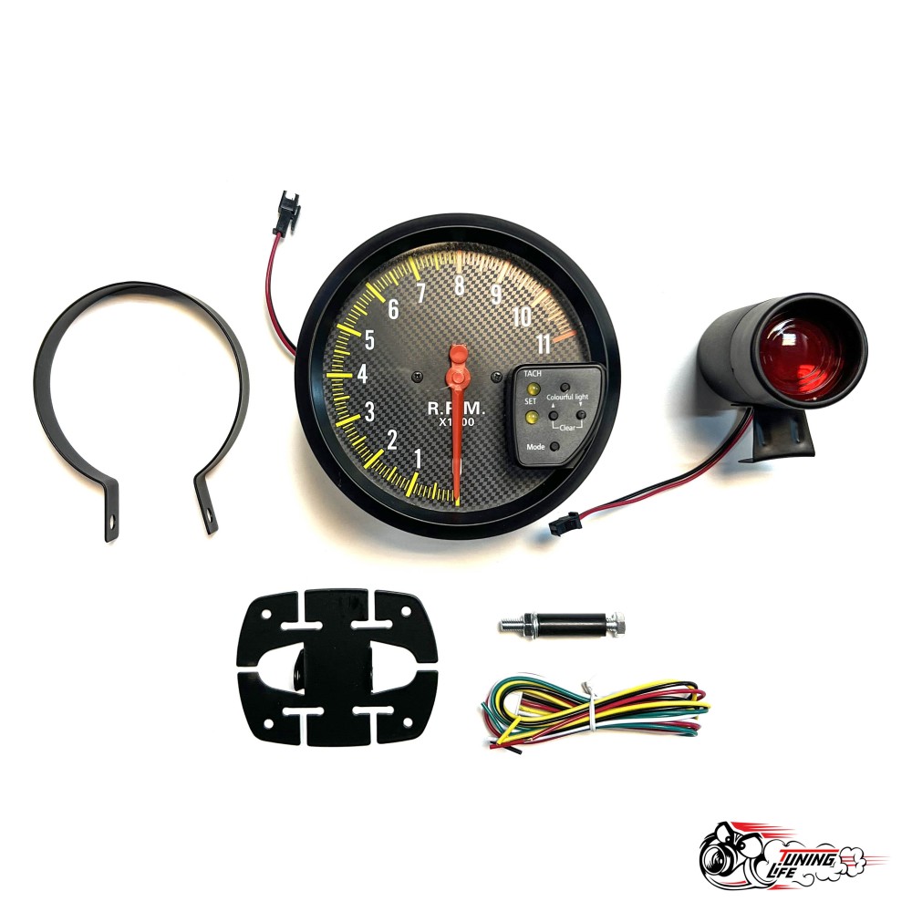 Комплектность: показометр, шифт-лампа, регулятор настройки индикатора переключения передач, монтажный набор, хомут для установки.