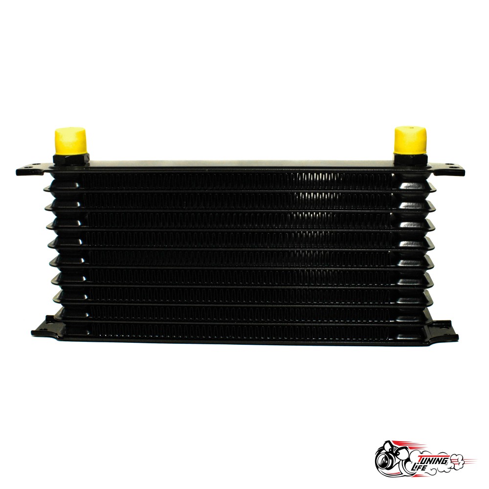 Универсальный масляный радиатор Trust Style 10 секций. Физический размер: Длина: 300 мм, с креплениями 340 мм Высота: 140 мм, с выходами 170 мм Ширина: 50 мм Размер ядра: 230 мм х 135 мм х 50 мм Выхода: AN10 7/8"-14 UNF Материал: алюминий, полимерная окраска Цвет: Черный; Применяется для охлаждения масляной системы ДВС и Трансмиссии. Подключается с помощью адаптера под масляный фильтр двигателя, а так же шлангов и фитингов AN10. Масляный радиатор необходим для охлаждения масла, так как при экстремальных нагрузках температура масла достигает критических пределов, при которых масло теряет свои свойства. Масляный радиатор является решением, которое позволяет эффективно охлаждать рабочую жидкость системы смазки ДВС и Трансмиссии. Можем доукомплектовать установочным комплектом с выносом фильтра.