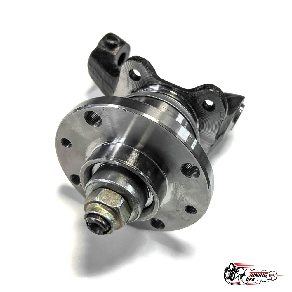Тюнинг версия передней ступицы, собранная на базе поворотного кулака ВАЗ 2108 с нерегулируемой ступицей ВАЗ 2108 с подшипником ВАЗ 2108. После установки данного узла Вы навсегда забудете о подтягивании ступичного болта и частой замены передних подшипников. Удобство и долговечность вам обеспечено.