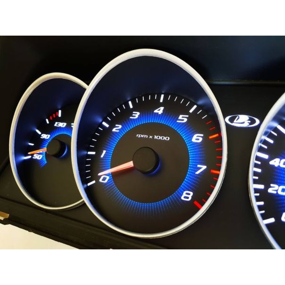 Стильный, современный дизайн циферблата в сочетании с 3d кольцами полностью поменяет унылый вид штатных приборов.