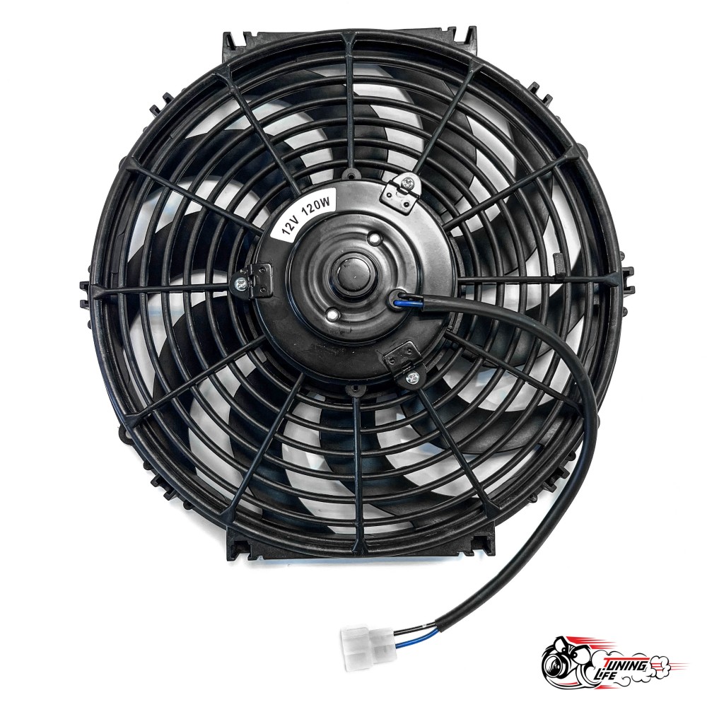 Универсальный вентилятор охлаждения радиатора диаметром 12 дюймов (300мм), мощностью 120w в защитном кожухе и с крепежом на соту радиатора или диффузор. Можно ставить на любой штатный и нештатный радиатор, масляный радиатор или кулер трансмиссии, исходя из ваших потребностей и размеров.