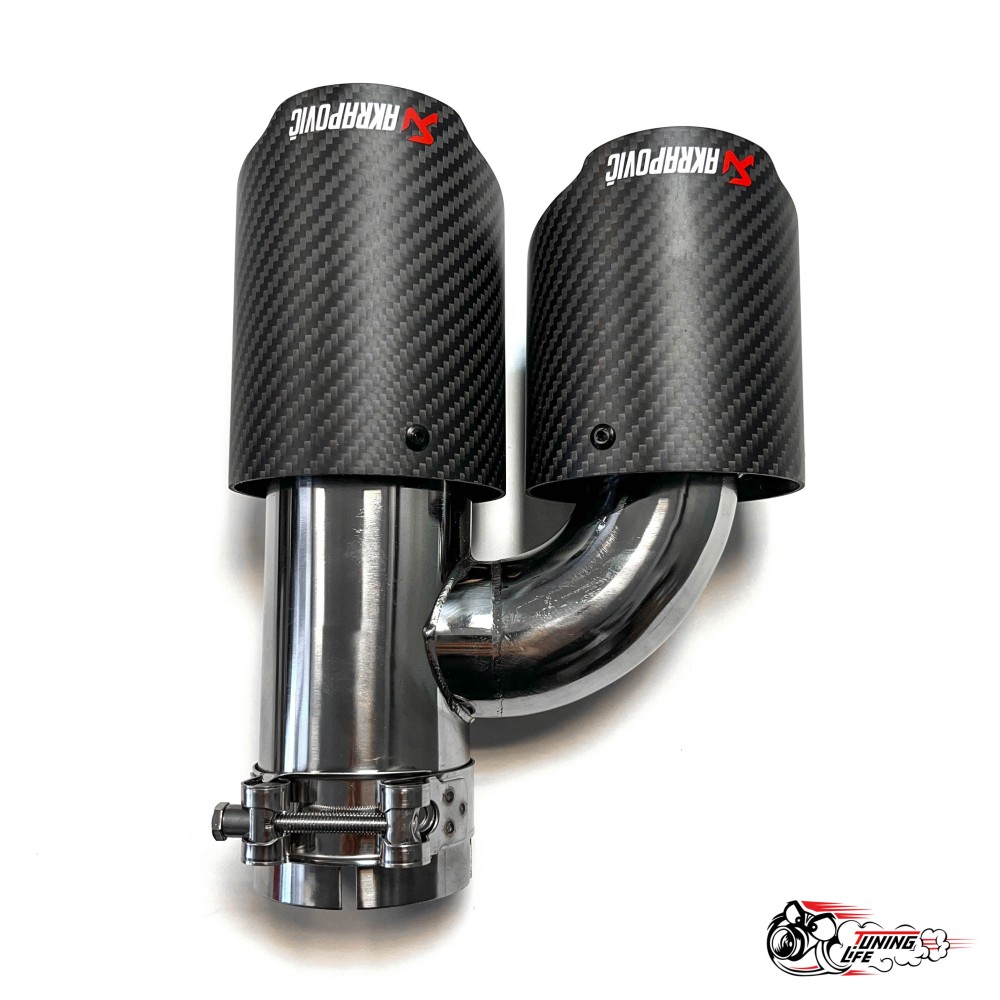 - Насадка на глушитель двойная h наруж. Акрапович левая обрезанная со скосом мат 63 - 89