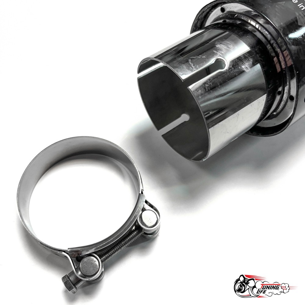 Установить насадку на выхлопную трубу можно легко с применением специальных хомутов, что делает процесс установки простым и не требующим специальных навыков.