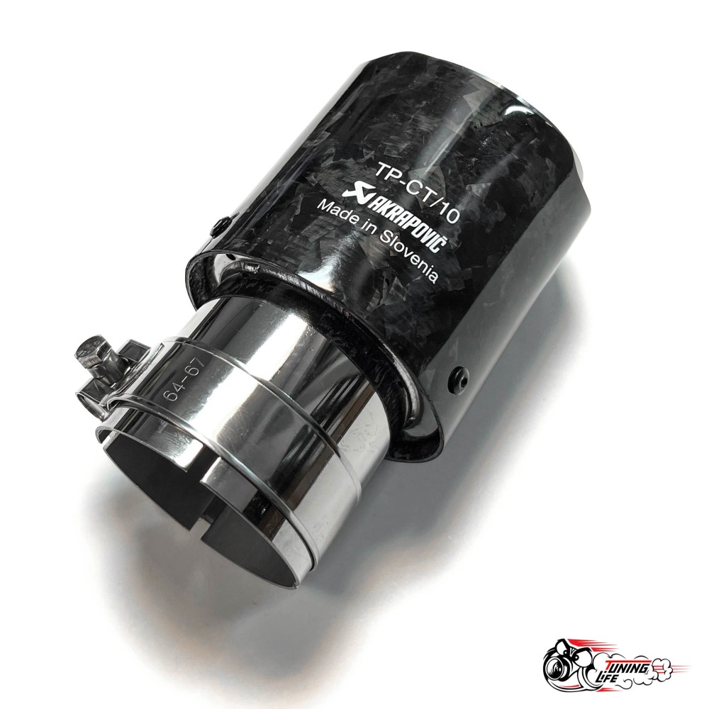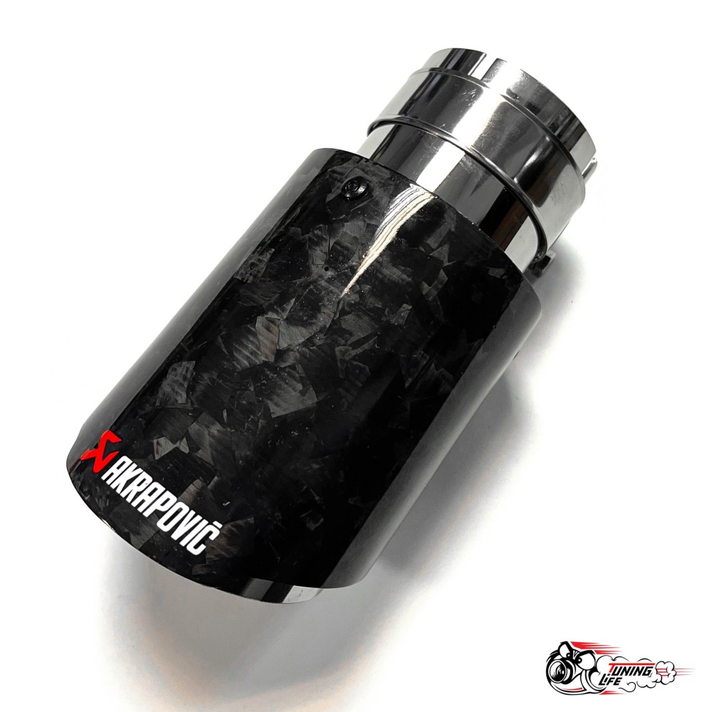 - Насадка на глушитель НЕРЖ. Акрапович обрезаннаяя глянец КОВАННЫЙ карбон Ф 63-89