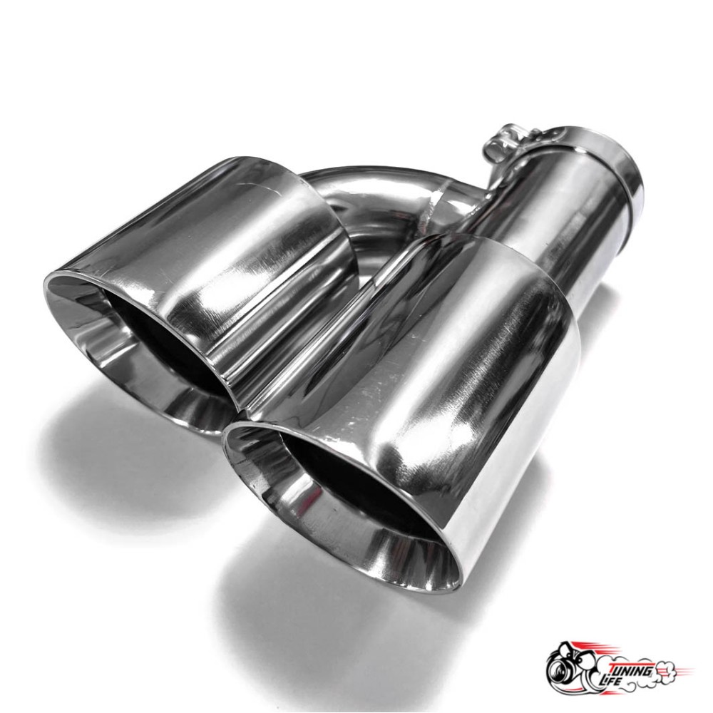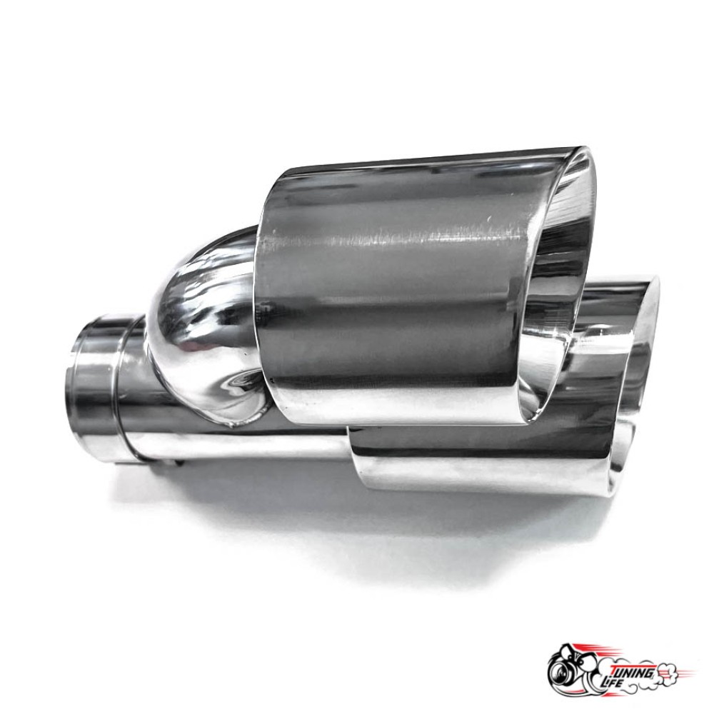 Насадка на глушитель двойная h наруж. НЕРЖ. левая со скосом 63 - 89