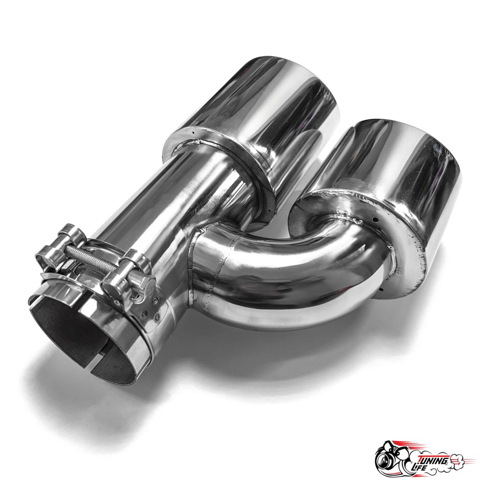 Насадка на глушитель двойная h наруж. НЕРЖ. правая со скосом 63 - 89