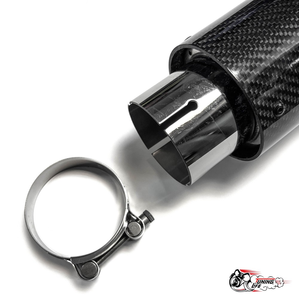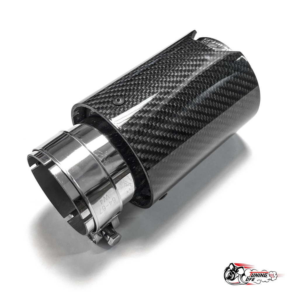 Насадка на глушитель из нержавеющей стали "M Style" карбон глянец 63 - 89мм.