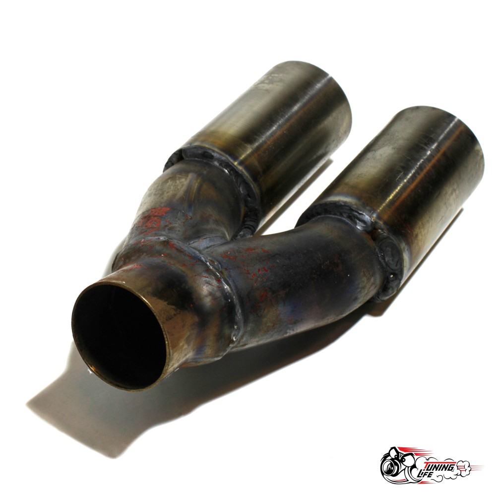 Диаметр внешний каждой трубы 63 мм, выход под сварку 51 мм, длинна 280мм.