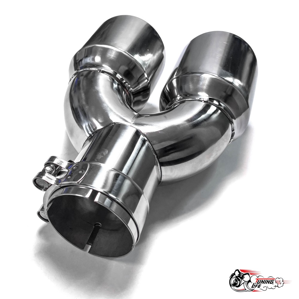 U-образная насадка на глушитель выполнена из нержавеющей стали, хромированная со скосом. Раздвоенная насадка устанавливается на конец выхлопной трубы автомобиля. Универсальная насадка выполнена из высококачественной нержавеющей стали, что обеспечивает долговечность и устойчивость к коррозии. Имеет уникальный дизайн. Установить круглую насадку на выхлопную трубу можно легко с применением специального хомута, который идет в комплекте, что делает процесс установки простым и не требующим специальных навыков. Характеристики: Материал: Нержавеющая сталь; Диаметр: Вход 63мм / Выход 89мм; Толщина стенок: 1,5мм; Крепление хомутом или под приварку Применяемость: - Устанавливается с правой стороны; - Универсальная; Эта универсальная насадка на глушитель не только улучшит внешний вид вашего автомобиля, добавив ему спортивный и стильный внешний вид, но и улучшит звук выхлопной системы. Раздвоенная насадка идеально подходит для автотюнинга, предоставляя вам возможность выделиться из потока машин и подчеркнуть индивидуальность вашего авто. Такая насадка из нержавеющей стали является отличным автомобильным аксессуаром для спортивного тюнинга, созданным из высококачественных автокомпонентов. Данная насадка для автомобиля поможет создать более спортивный и динамичный образ вашему автомобилю, улучшив внешний вид и придав вашему транспорту особый шарм.
