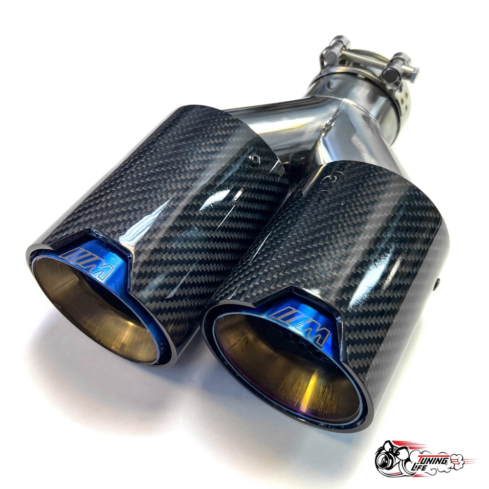 Раздвоенная насадка на глушитель М стиль, со скосом и опалом, открытого типа – это идеальное решение для тех, кто хочет улучшить внешний вид и характеристики своего автомобиля. Изготовленная из карбона, данная насадка выделяется своим черным цветом и стильным дизайном, который органично впишется в любой автомобиль. С диаметром от 63 до 89 мм, она подходит для большинства стандартных выхлопных труб.