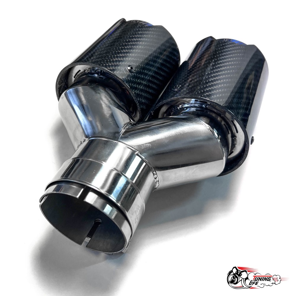 Насадка на глушитель двойная Y НЕРЖ. М стиль карбон глянец правая со скосом 63 - 89 ОПАЛ