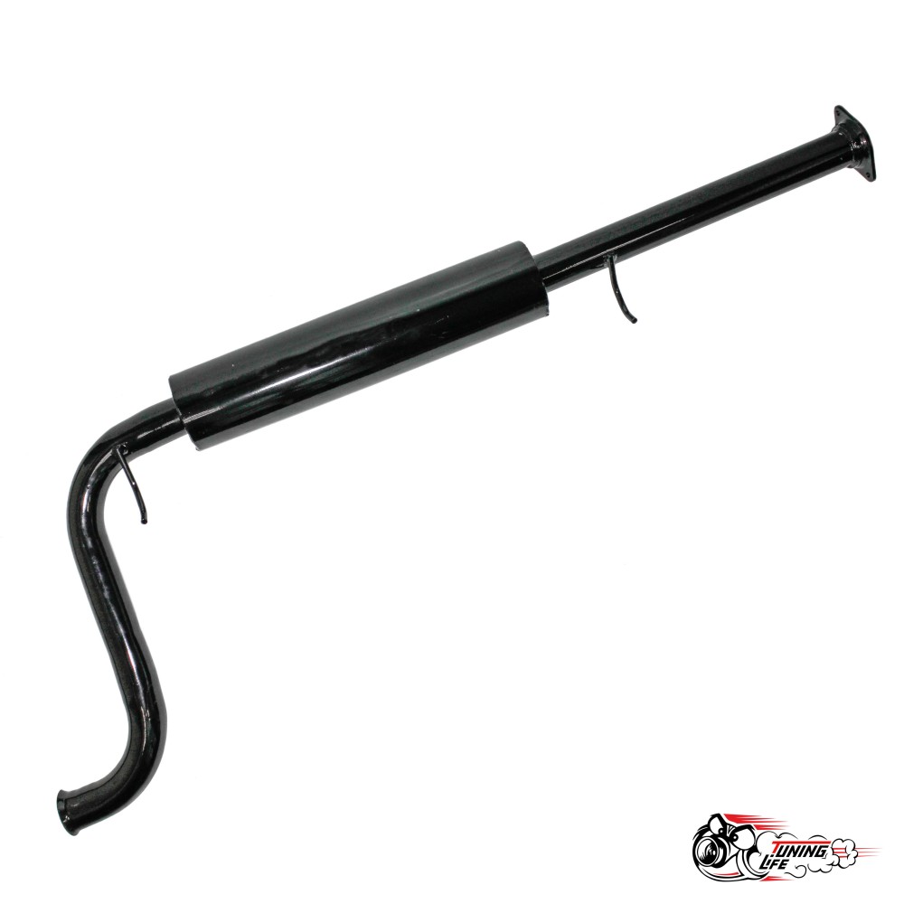 Так же стыкуется без доработок как со штатным глушителем так и с прямоточным тюнинг глушителем.