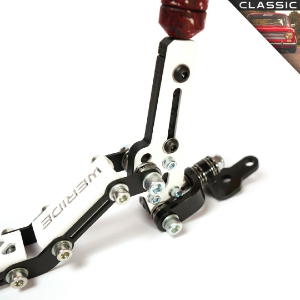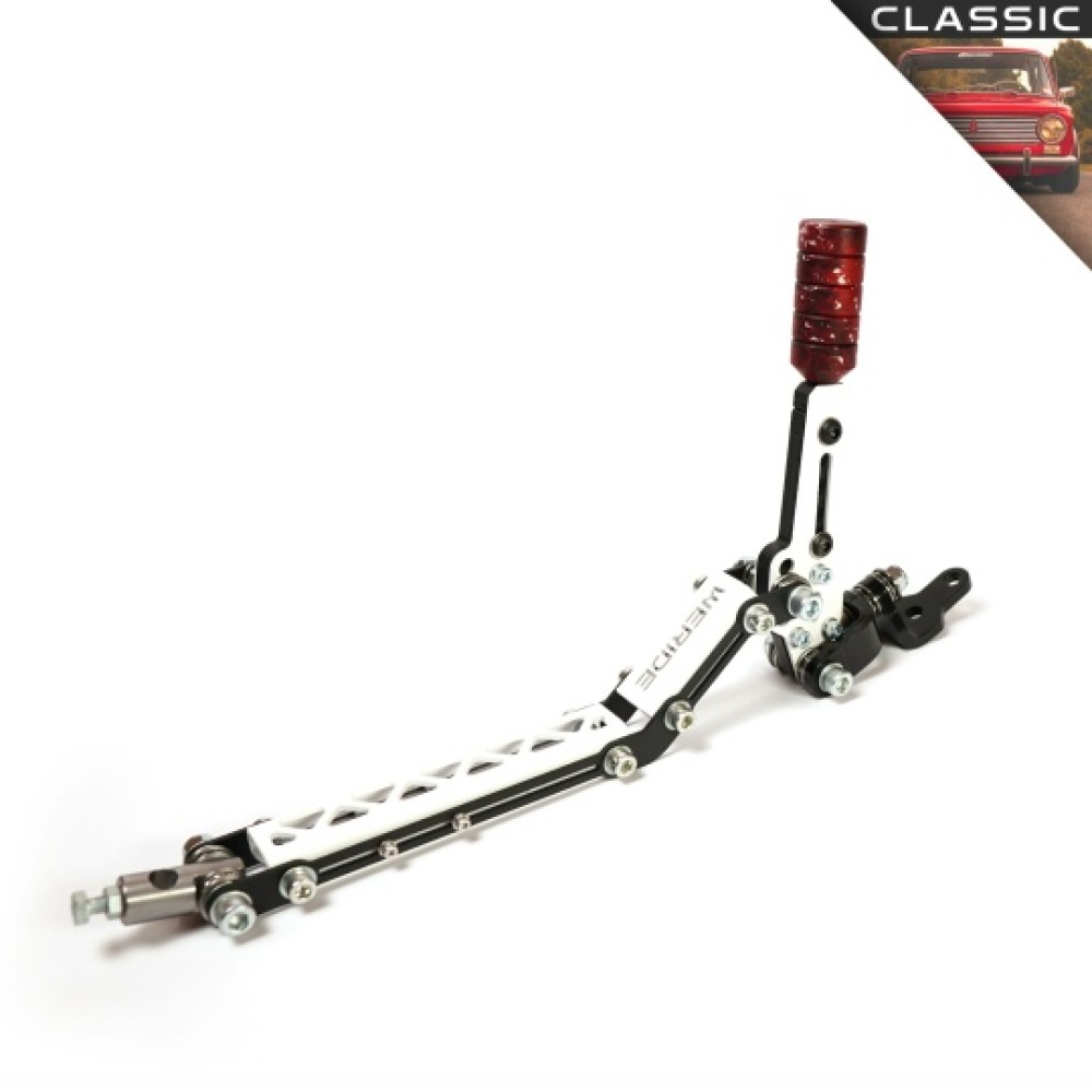 КОМПЛЕКТАЦИЯ: - Кулиса в сборе - 1шт. ОПИСАНИЕ: Данная кулиса устанавливается на автомобили с четырёх и пятиступенчатыми КПП. ХАРАКТЕРИСТИКИ: --- Ручка из алюминия Д16Т, со специальным анодированием. --- Регулировка высоты кулисы - высота от пола от 285мм до 335мм. --- Длина кулисы от штока КПП до вертикально стоящей ручки - 365мм. --- Регулировка длины хода. --- Упорные подшипники в конструкции, полное отсутствие люфтов. --- Прочный стальной корпус, который не будет "играть" от нагрузки.