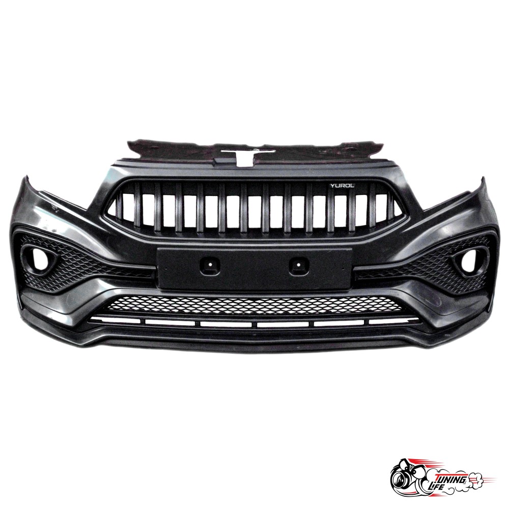 Бампер изготовлен из АБС пластика, исполнение под родные ПТФ (заглушек в комплекте нет). Некрашеный.