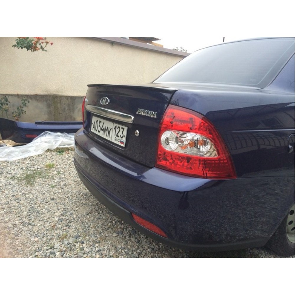 Лип спойлер для приоры седан. Устанавливается на двухсторонний скотч. Материал - абс пластик. 2.0мм