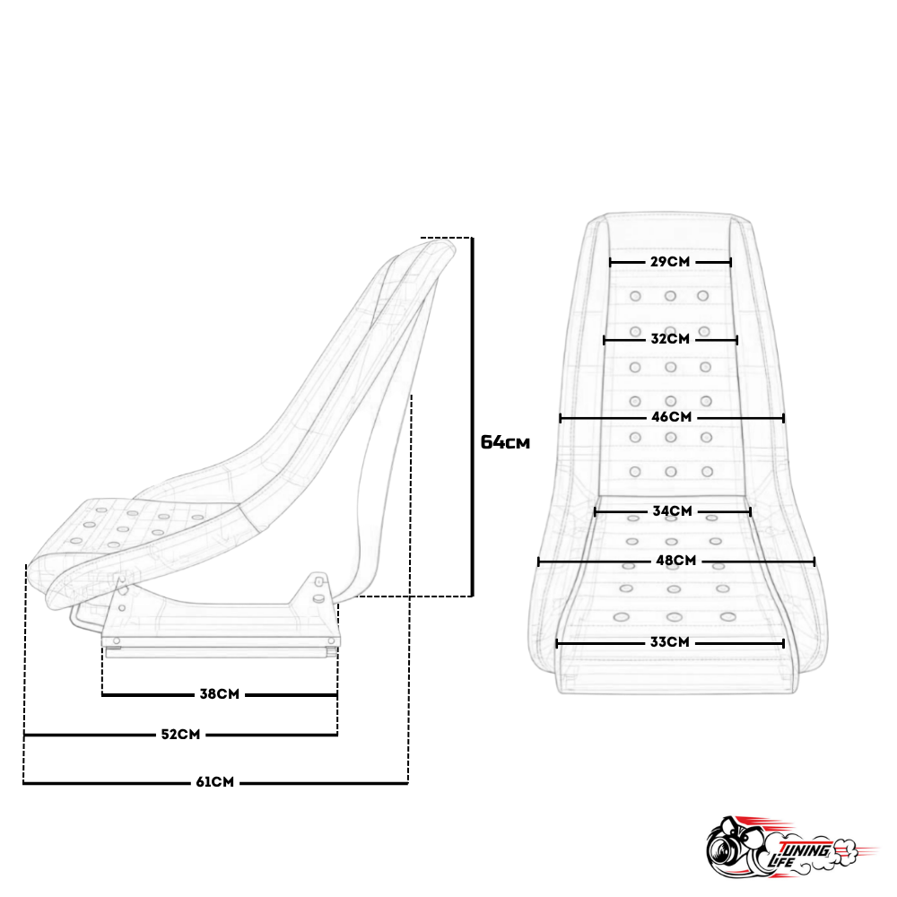 Наличие боковых поддержек делает данное сидение оптимальным для комфортной и безопасной посадки пилота при участии в различных соревнованиях, а так же при повседневной езде. Имеет регулировку вперед/назад, подголовник. Внутри кресла находится прочный трубчатый каркас. Доступно только в одном размере.