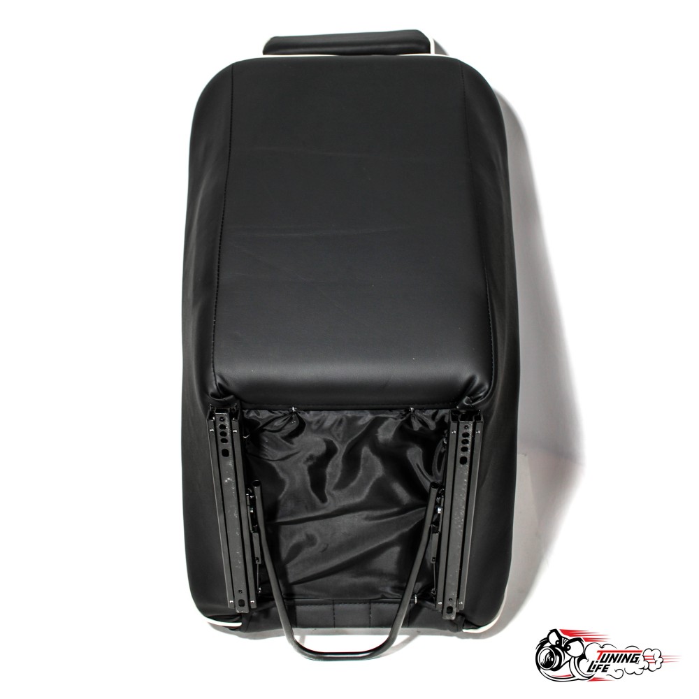 Сиденье изготовлено из качественного материала — эко-кожи, которая отличается долговечностью и устойчивостью к износу. Черный цвет обивки в сочетании с белой строчкой придает изделию стильный и современный вид, подчеркивая его спортивный характер. Такая комбинация цветов не только эстетически привлекательна, но и универсальна, что позволяет сиденью гармонично вписаться в интерьер любого автомобиля.