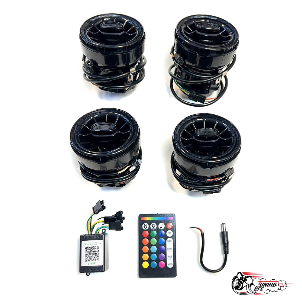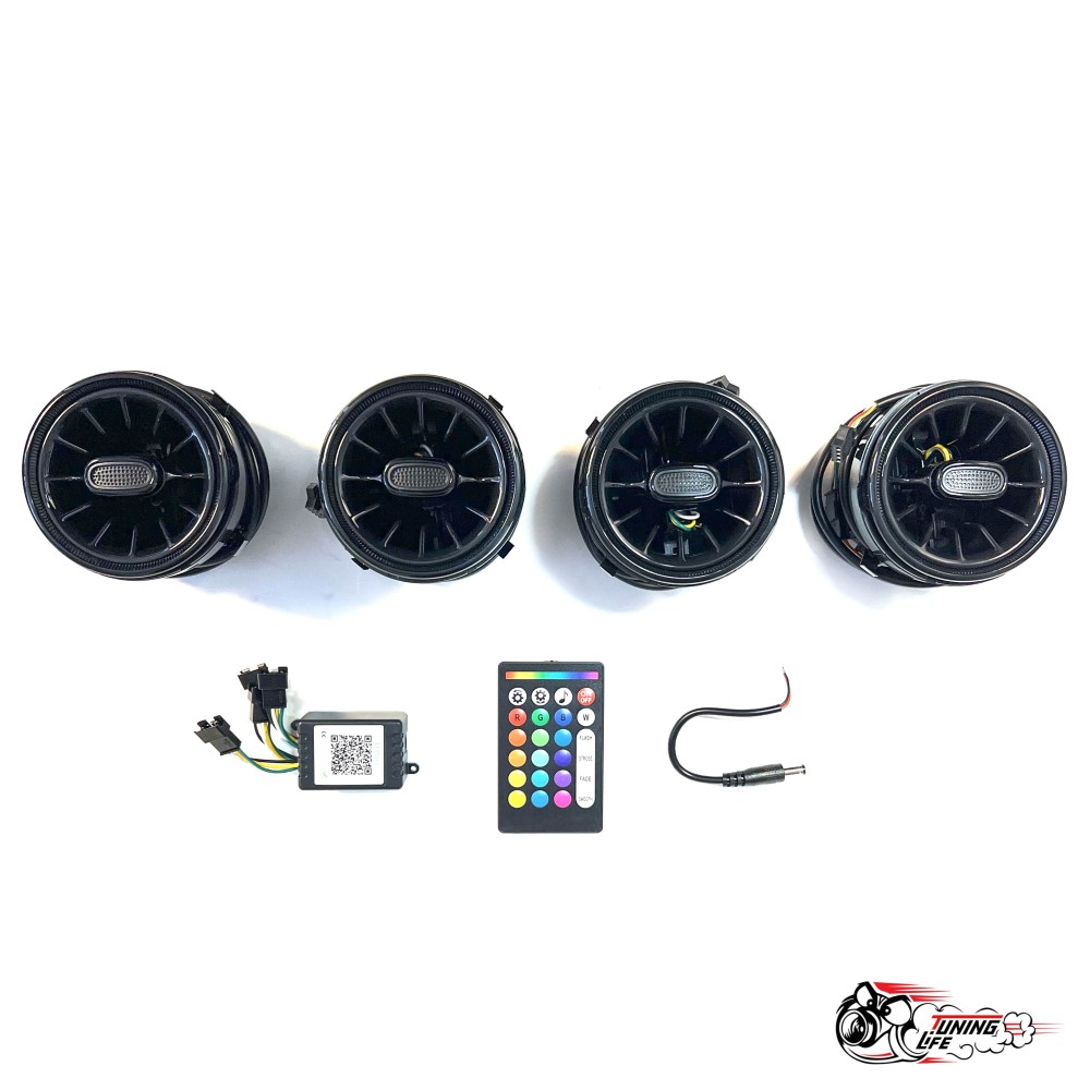 Воздуховоды AMG Гранта регулируемые Черные,4 шт, 8 цветов, 2 варианта управления, Пульт и Приложение