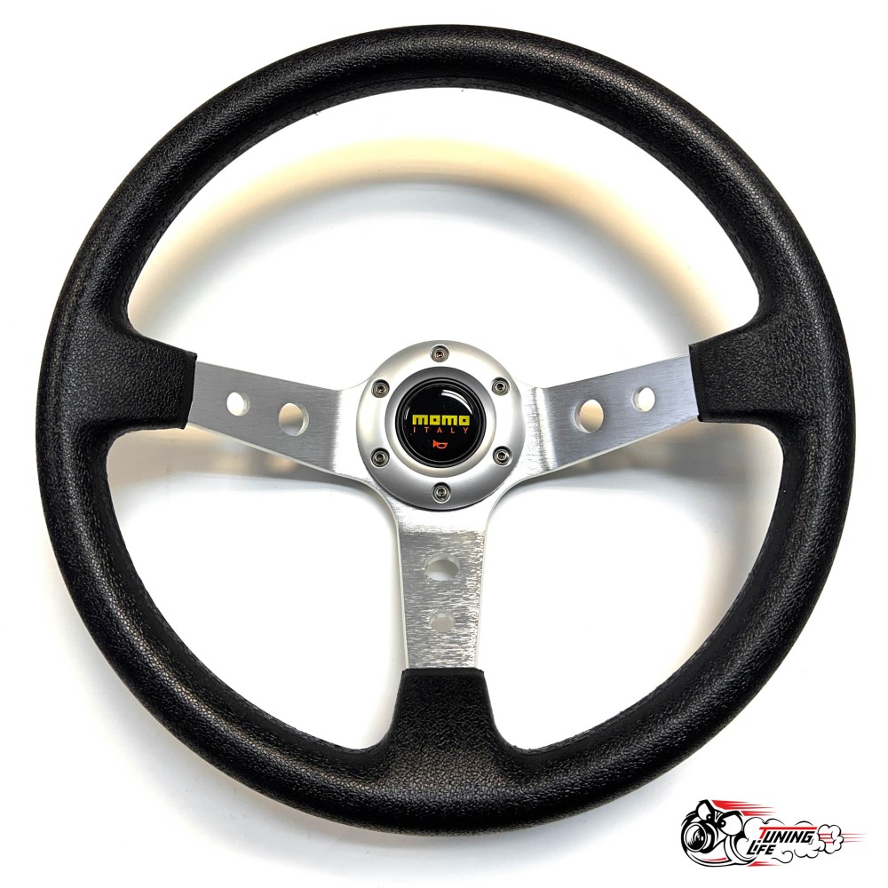 Спортивный руль MOMO с выносом 100мм . Оптимальная форма руля увеличивает комфорт от вождения, а так же повышают четкость управления автомобилем как при повседневной езде, так и при участие в различных соревнованиях.