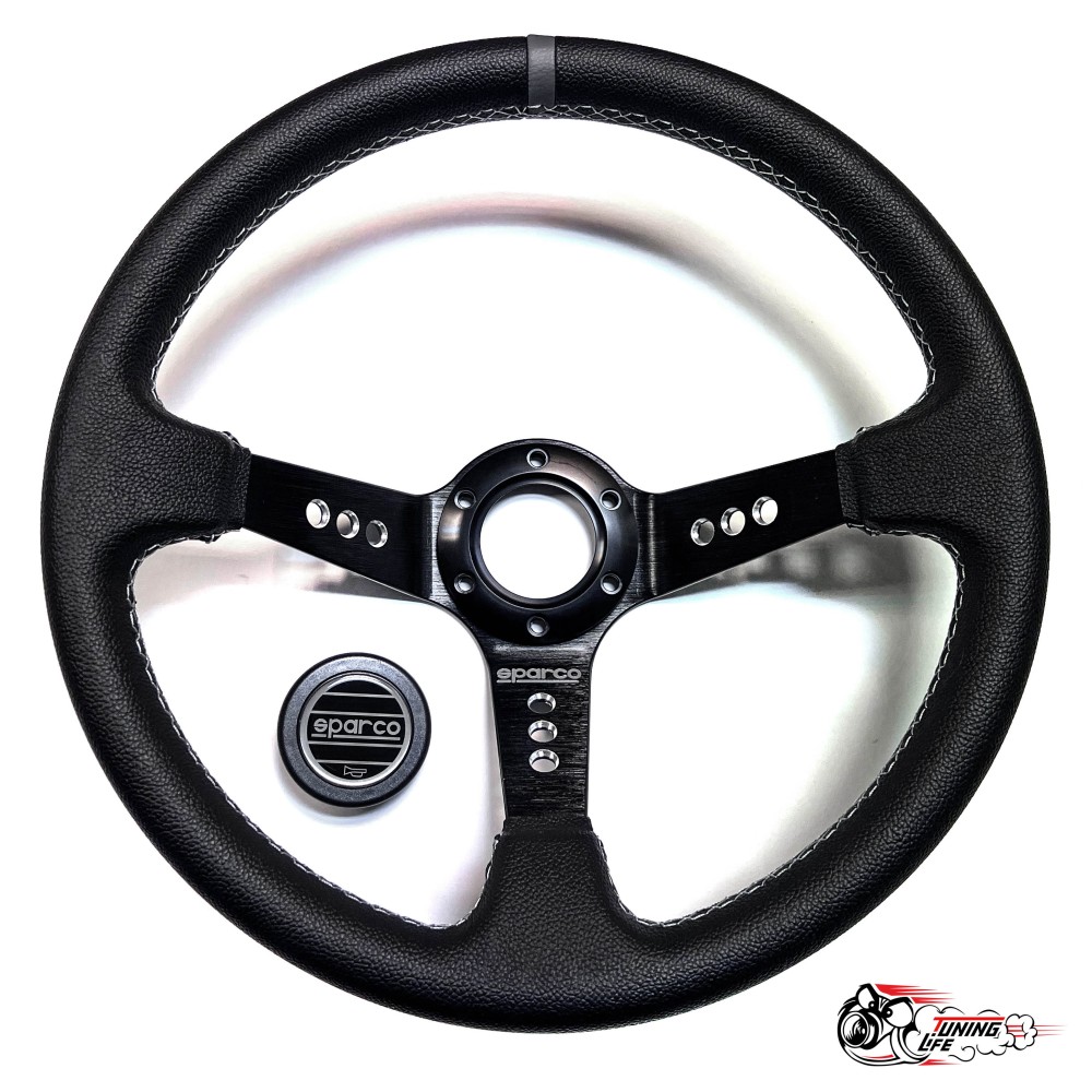 Технические характеристики Руль Sparco кожа черный центр серая полоска D35 (9 отверстий)