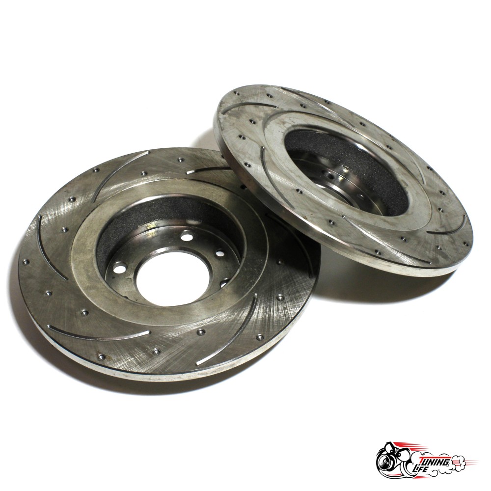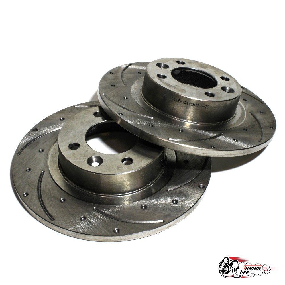 Тормозные вентилируемые диски АТС-SPORT направленные по движению канавки 6 шт, плюс перфорация 18 отверстий.