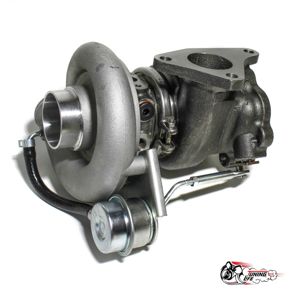 Самый популярный турбокомпрессор на рынке,приемлимый выход на буст,большая мощность,долговечность.Мощность которую можно снять при давлении 1.5 бар примерно 350-450 сил в зависимости от доработки двигателя.